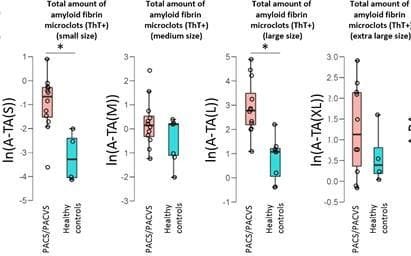 Furthermore, this test does not only assess the total quantity of ThT+ and ThT- particles, but also identified that size plays a crucial role in microclots. Using state-of-the-art imaging flow cytometry, the test analyses a high number of microclots with high precision, allowing for a detailed and reliable assessment. For example, small microclots are frequently upregulated in Post-Vac patients, whereas medium-sized microclots do not show the same pattern.